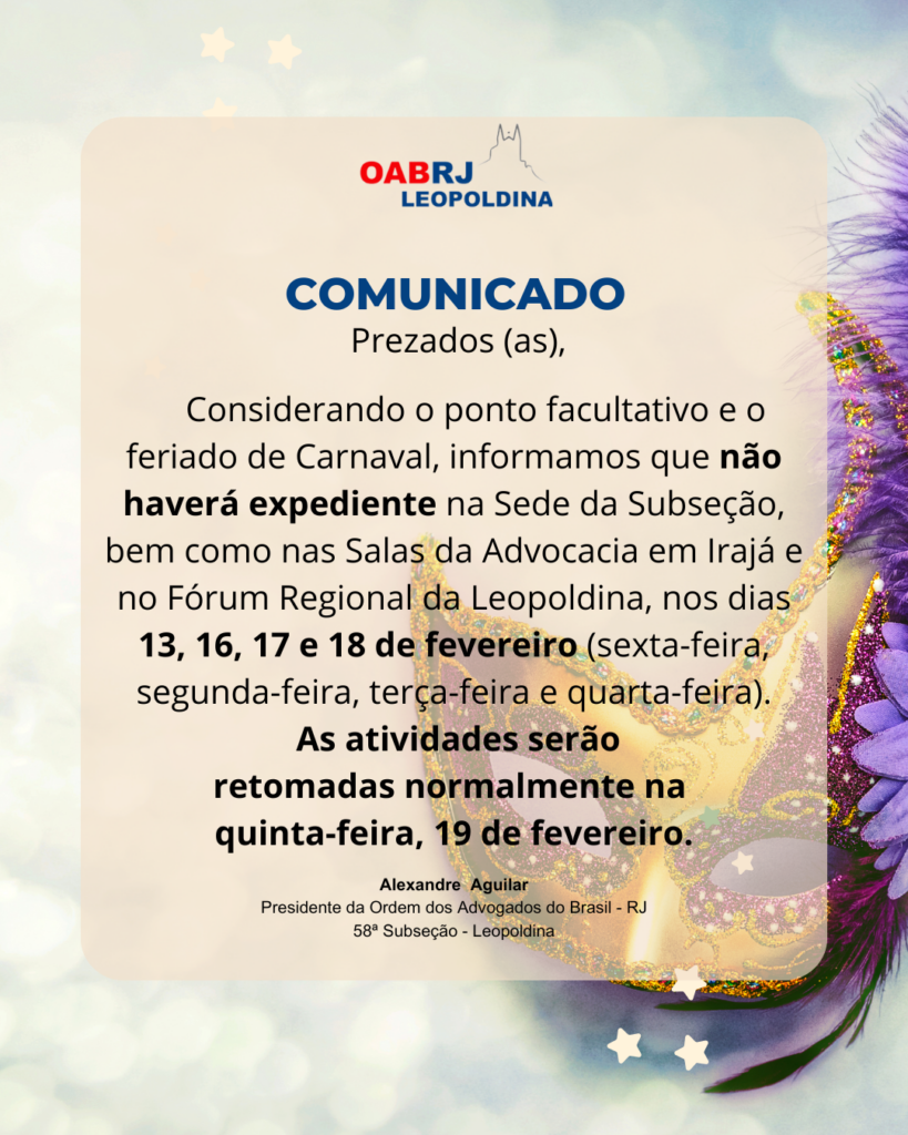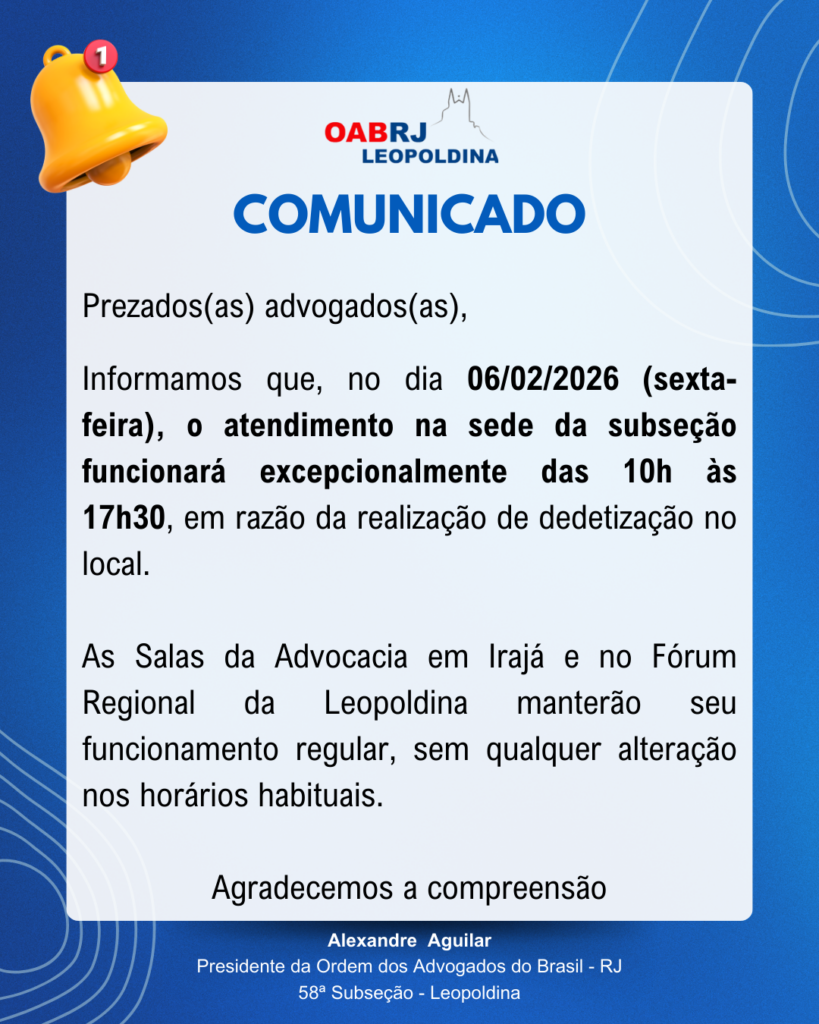 No dia 26 de novembro, a OABRJ Leopoldina realizará uma...