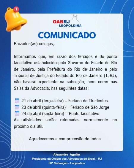 📌 14/04 – 15hSolenidade de Juramento e Entrega de Carteiras...