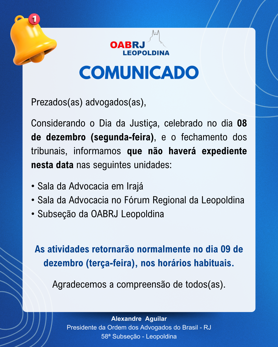 O presidente da subseção, Dr. Alexandre Aguilar,...