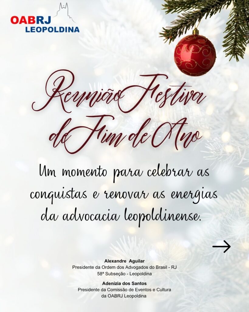 Encerrando 2025 com união, alegria e gratidão, a OABRJ Leopoldina convida toda a advocacia para celebrar as conquistas do ano e renovar as energias para o novo ciclo que se aproxima.